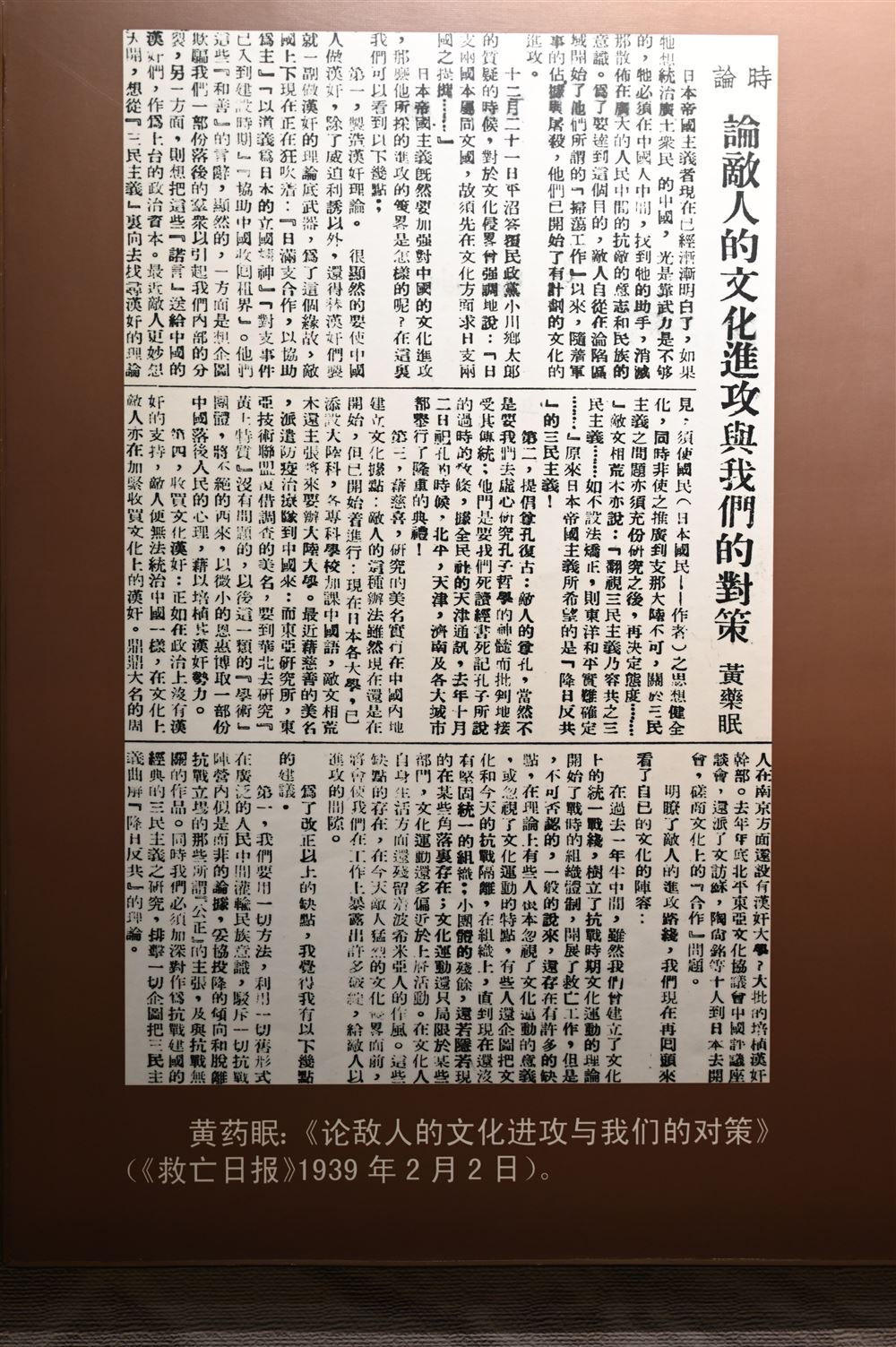 黄药眠:《论敌人的文化进攻与我们的对策》(《救亡日报》1939年2月2日)
