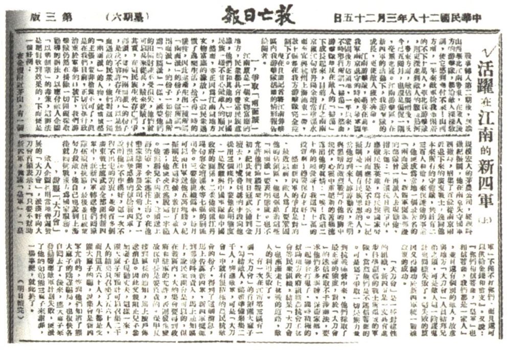 《救亡日报》发表司马文森文章《活跃在江南的新四军》